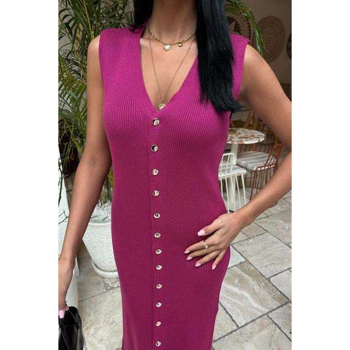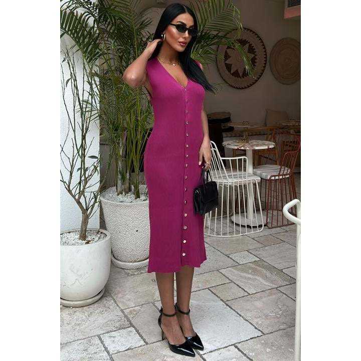 Button-Front Ribbed Sleeveless Sheath Dress 2832 Comfortable with Natural Waistline