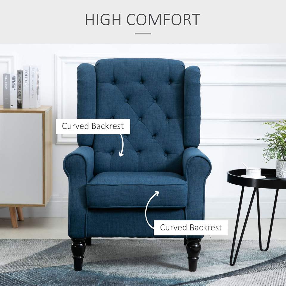 Ensemble de 2 fauteuils d'appoint capitonnés à boutons, dossier haut avec accoudoirs arrondis et assise épaisse rembourrée, bleu, pour salon