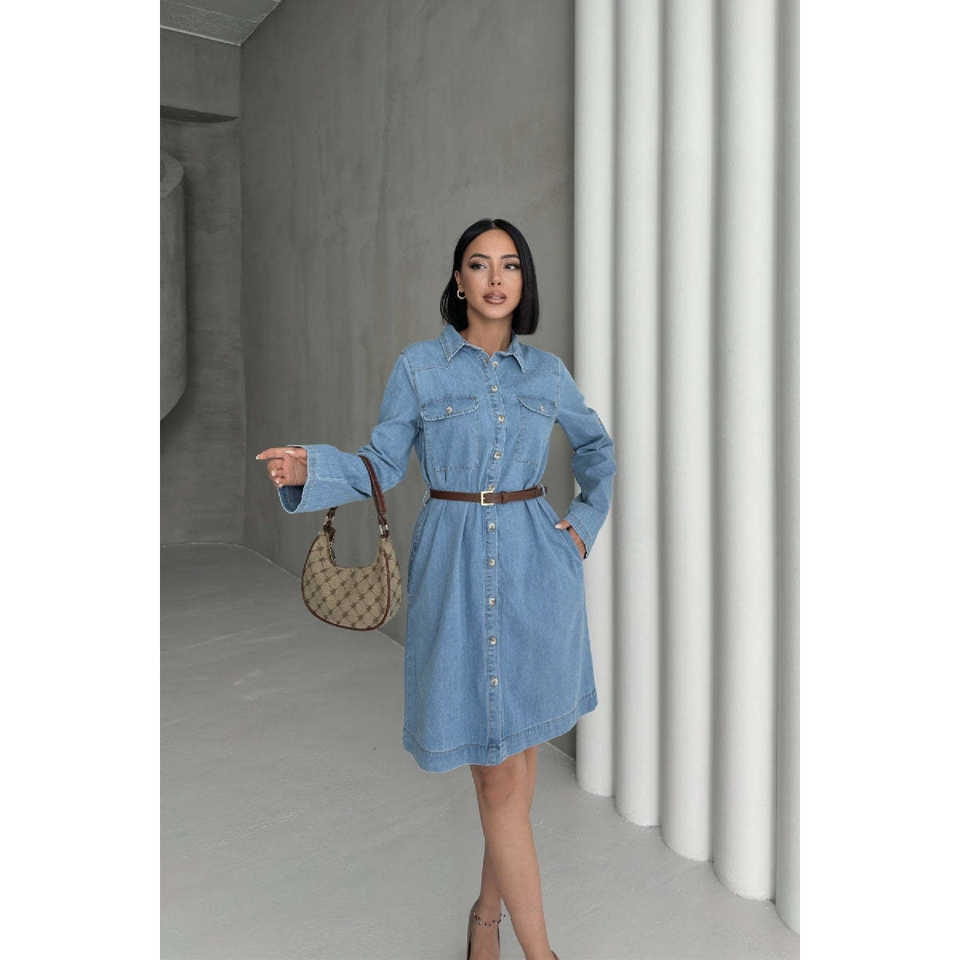 Buttoned Women's Denim Long Shirt Dress