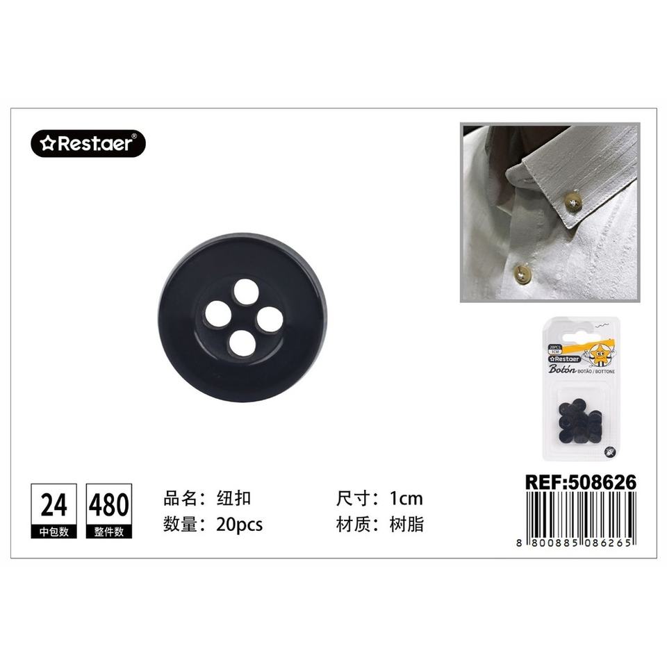 Boutons 20 pcs 1 cm noir-Accessoire Couture