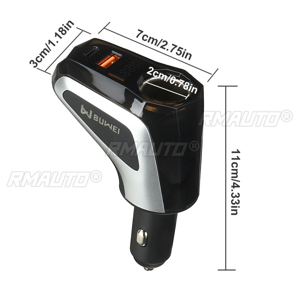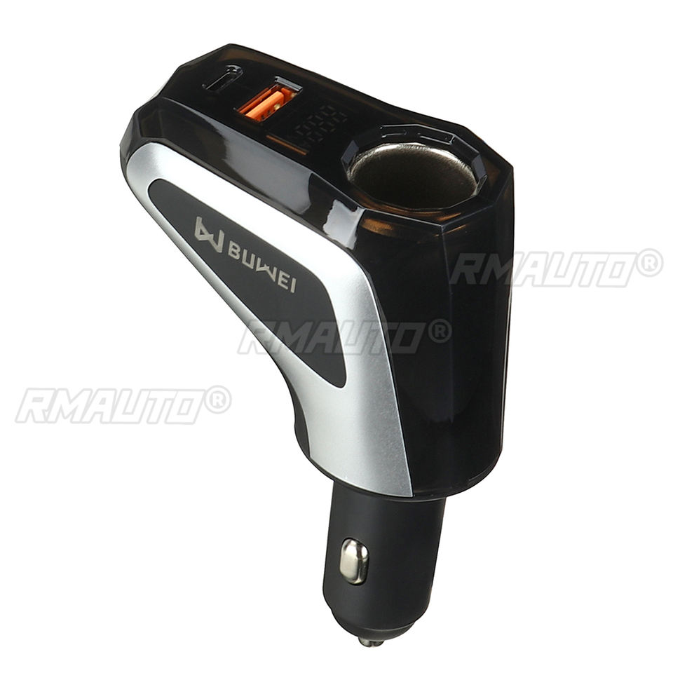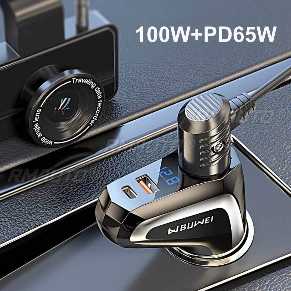 Chargeur de voiture Buwei DM32 avec charge rapide USB Type-C PD65W et 100W, affichage LCD et finition cristalline