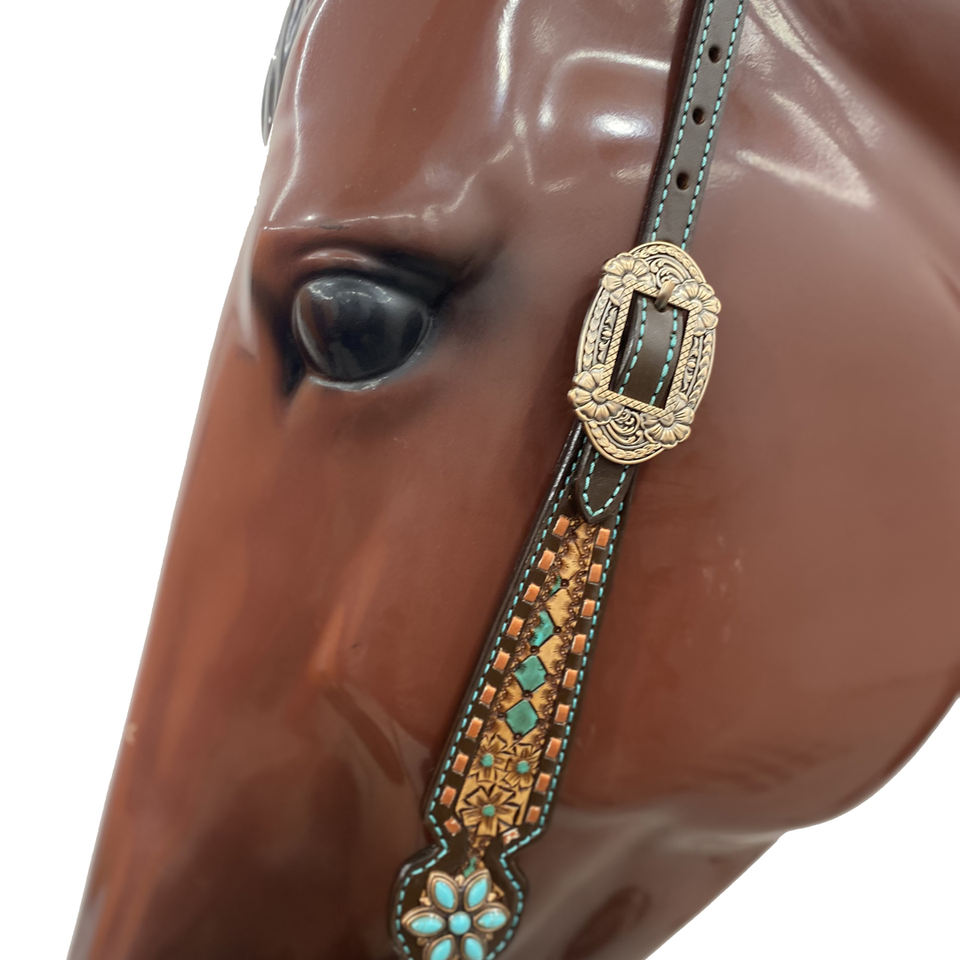 Feature 3:All conchos are flower shaped decorated with turquished stones