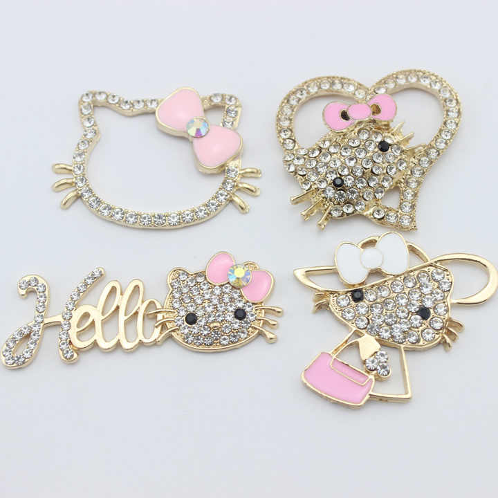 Achetez des accessoires de décoration pour coques de téléphone, breloques pour chaussures, en alliage, strass, style dessin animé, DIY, avec motifs nœud papillon, chat, chaton, plaqué, effet bling
