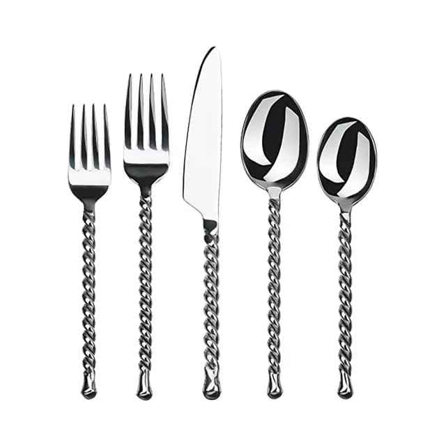 Achetez un ensemble de couverts en métal avec option de placage personnalisé, nouvelle tendance, moderne, en acier inoxydable plaqué argent, durable, effet miroir