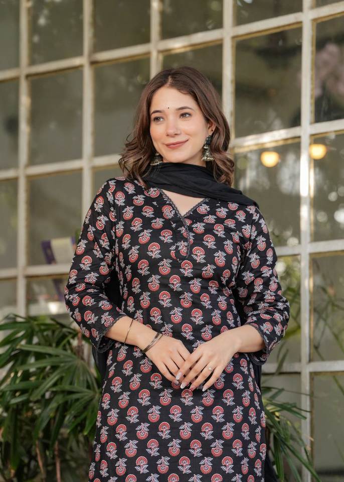 Acheter Ethnique Motif Différent Cou Broderie Noir Rouge Couleur Personnalisé Respirant Pur Coton Kurti Pantalon Ensemble Disponible De L'Inde