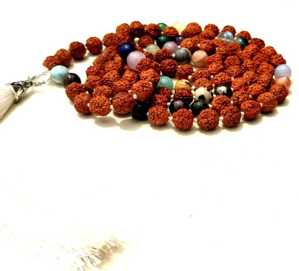 Acheter des bijoux de Yoga d'excellente qualité Rudraksha 108 perles Mala nouées à la main artistes indiens colliers de perles