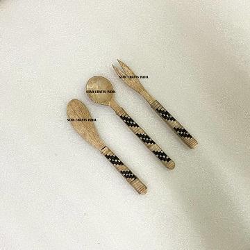 Acheter directement de l'usine cadeau de mariage ensemble de couverts en bois et manche en osier couverts de fête vaisselle vaisselle couverts de restaurant