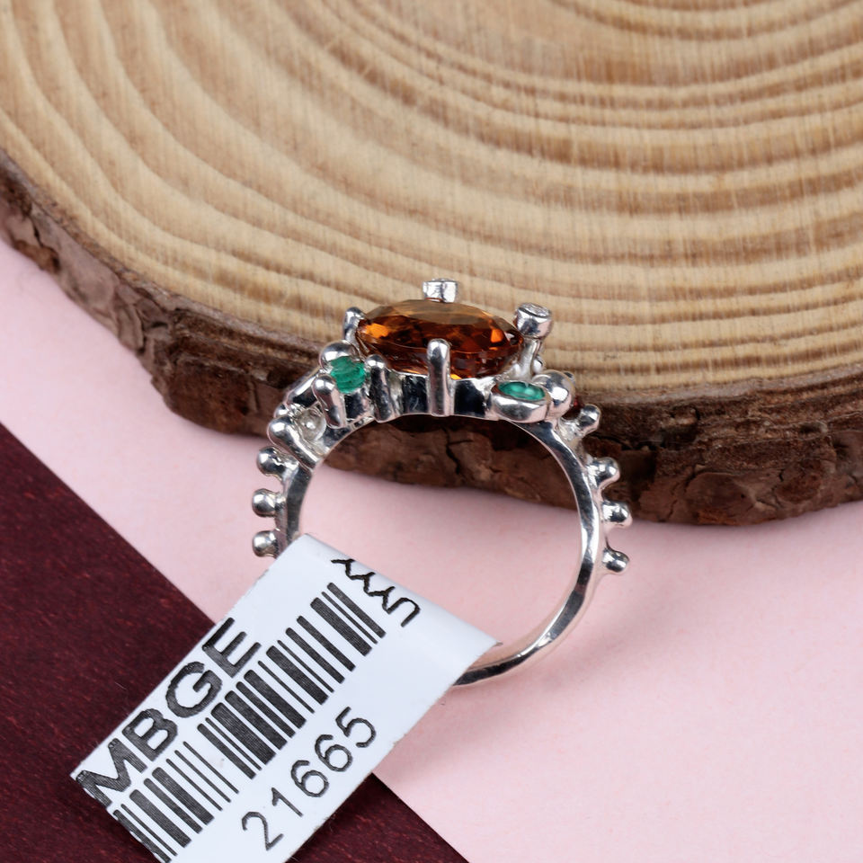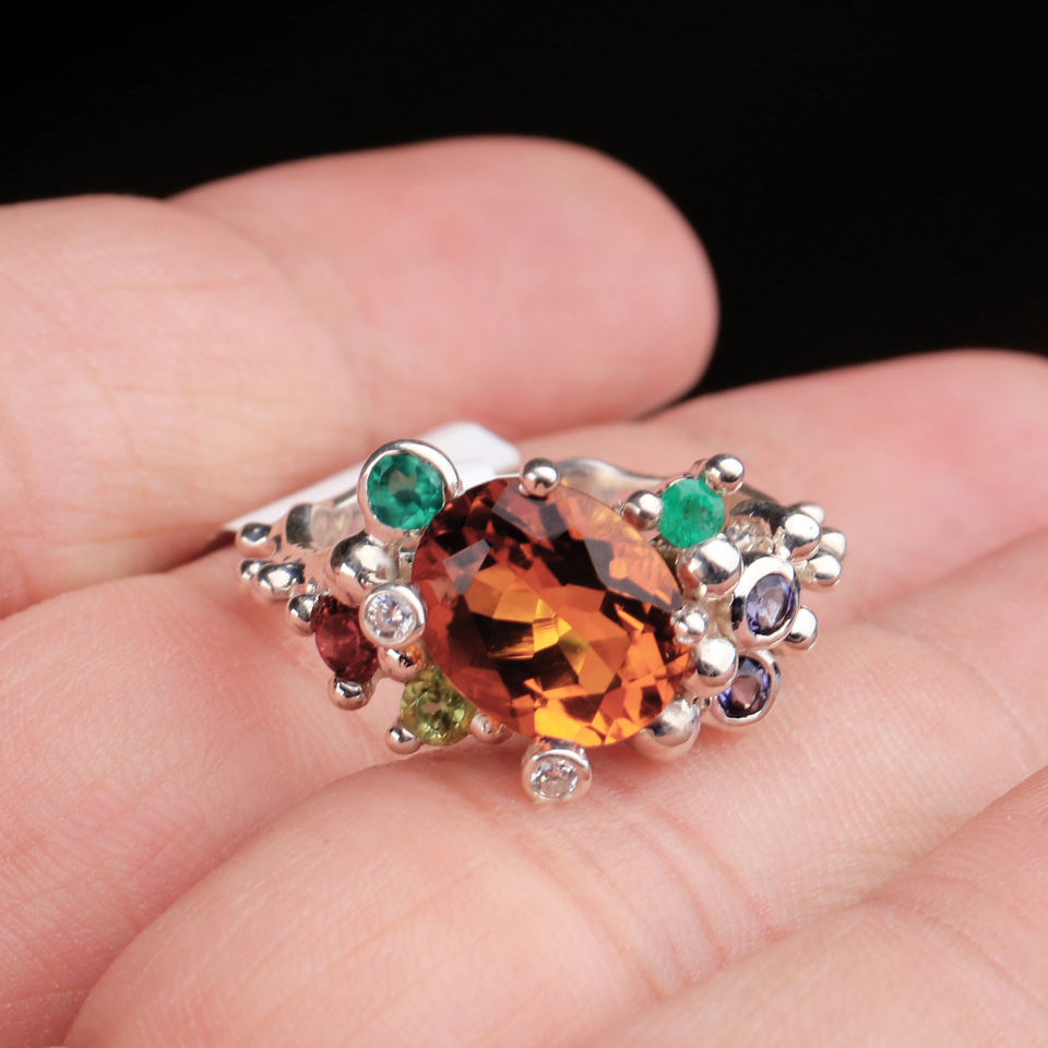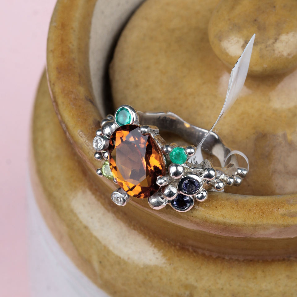 Nom de l'article:Belle bague en argent multi pierres précieuses naturelles