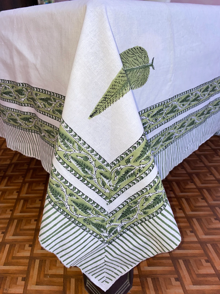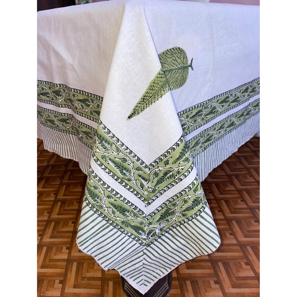Products Name:Green and Gray Floral Block Print Pure Cotton Table Cover