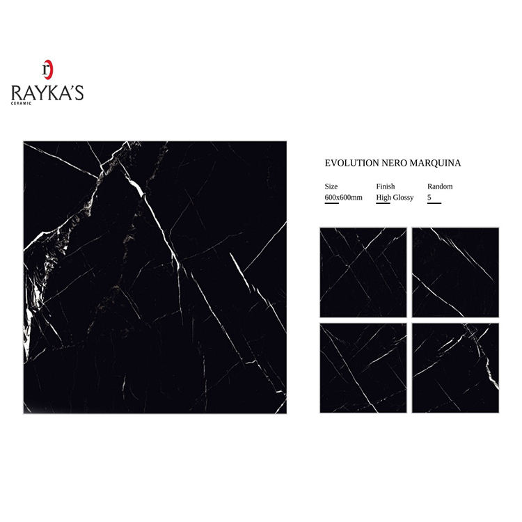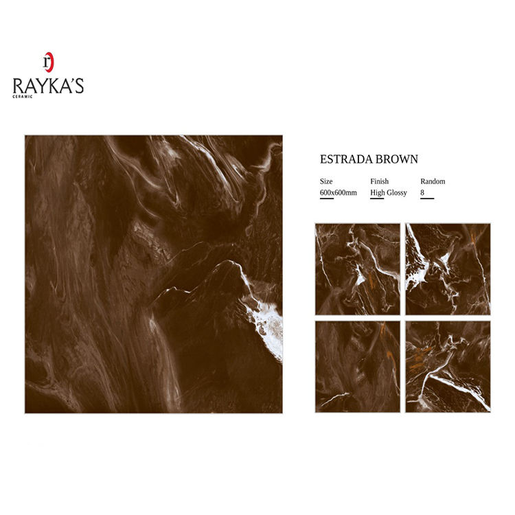 Modern High Glossy 600x600 mm Porcelain Floor Tiles for Bathroom Interior Reasonable Price with 5mm Thickness