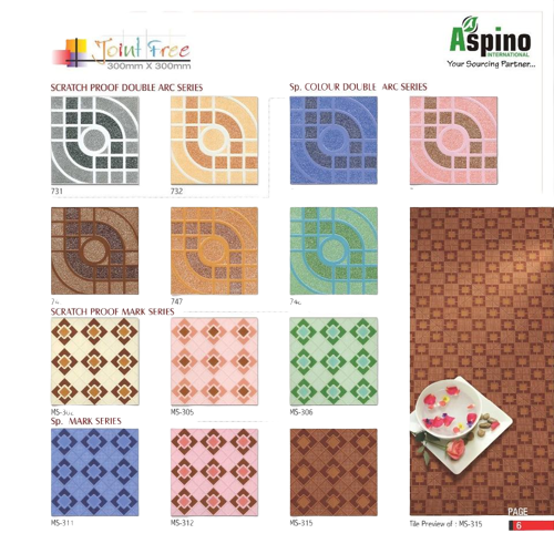Size: 300x300mm ,Thickness: 8mm, Weight/Box: 11Kg , Tiles/Box: 11pcs,Area/Box: 0.99 sqm Size: 400x400mm ,Thickness: 8mm, Weight/Box: 15.2Kg , Tiles/Box: 6pcs,Area/Box: 0.96 sqm