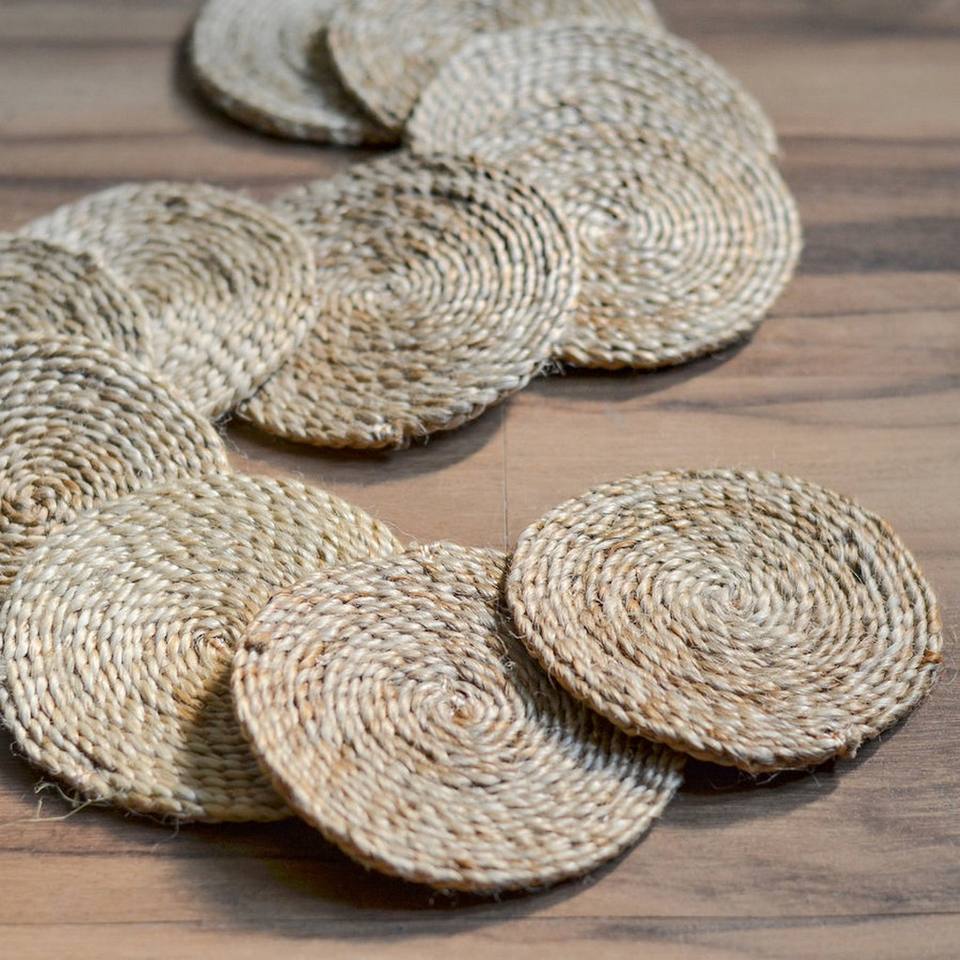 Acheter maison tissé rotin dessous de verre pour boisson froide et chaude qualité standard fait à la main tapis dessous de verre herbe de mer chargeur assiettes