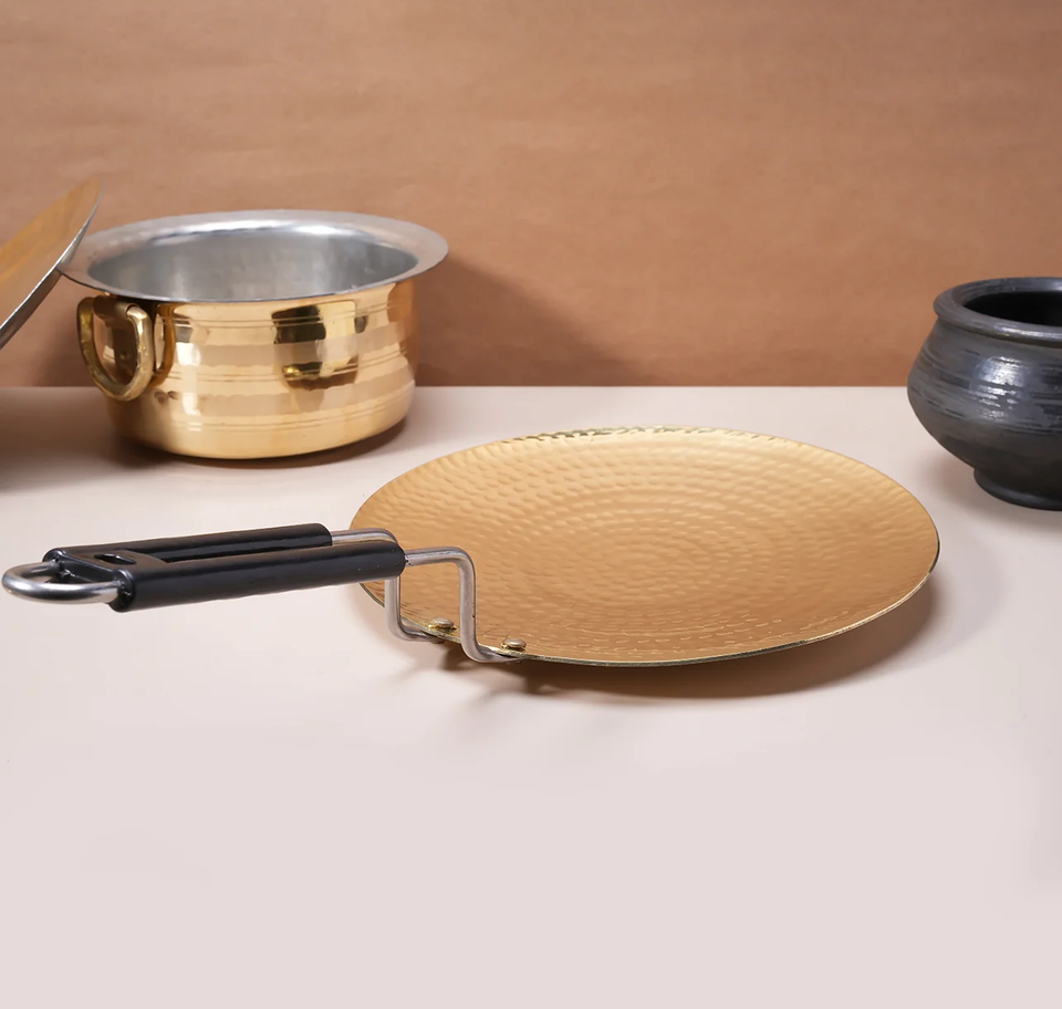 Acheter Roti Tawa martelé en laiton pur avec poignée Tawa indien traditionnel pour la fabrication de Roti Chapati Paratha martelé à la main
