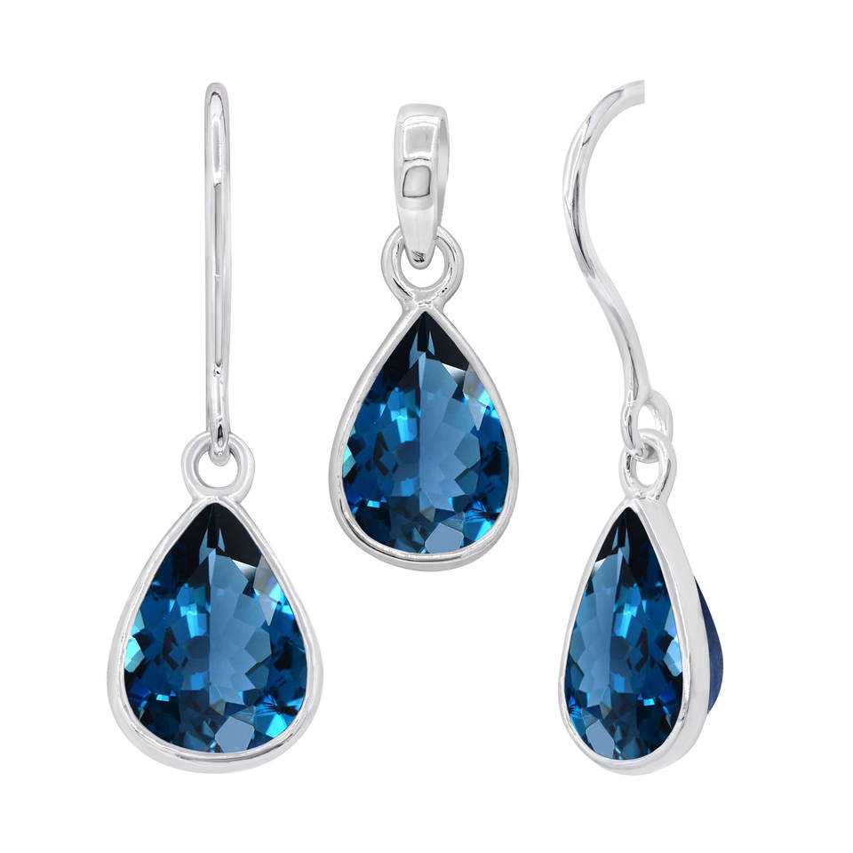 Nom de l'article:Ensemble de pendentif de boucle d'oreille facetté à la main topaze bleue londres