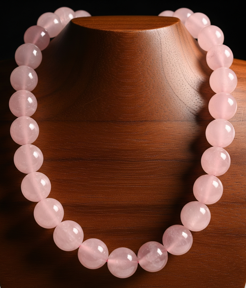 Buy Trending Rose Quartz Beaded Necklace for Women 18-Inch Silver 925 Lock Hand Knotted Design Trendy Fashion Accessory Gift
