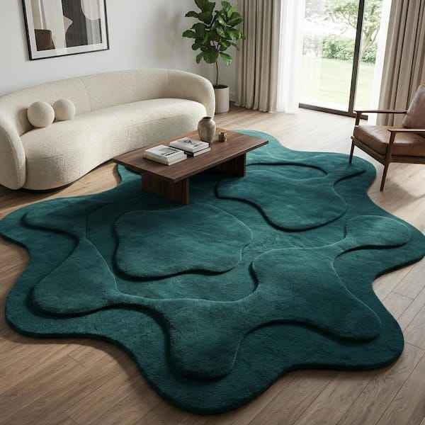 Tapis moderne vert Tectura, bordure festonnée, moelleux et décoratif