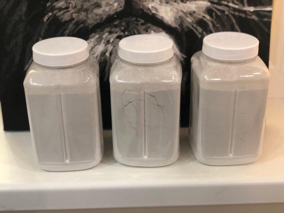 Appearance::Light grey odorless powder