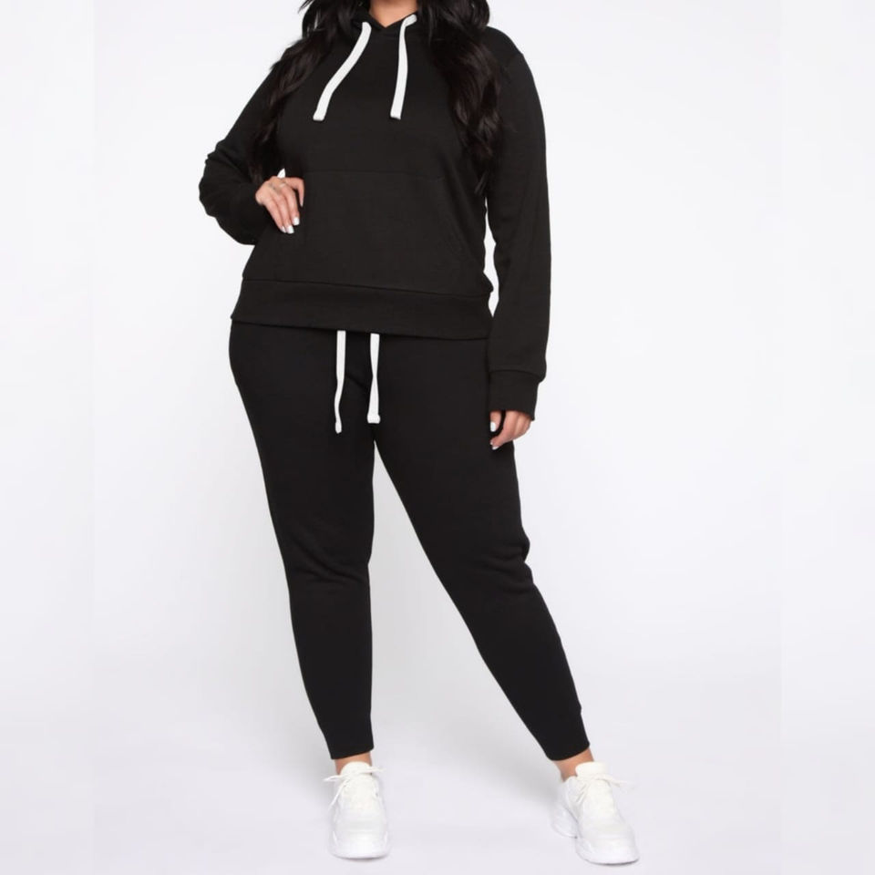 Women's Regular Fit Solid Eco-Friendly Hoodie Streetwear Set Fleece Sweatshirt Pant Tracksuit Breathable Casual Winter