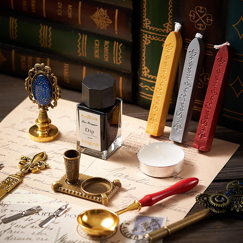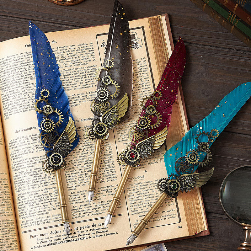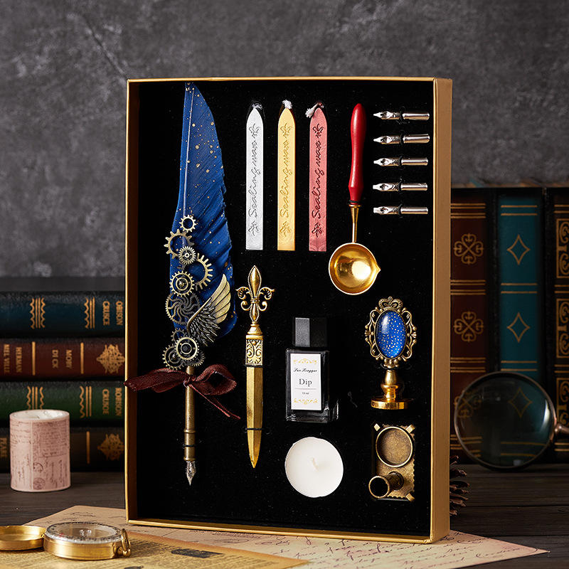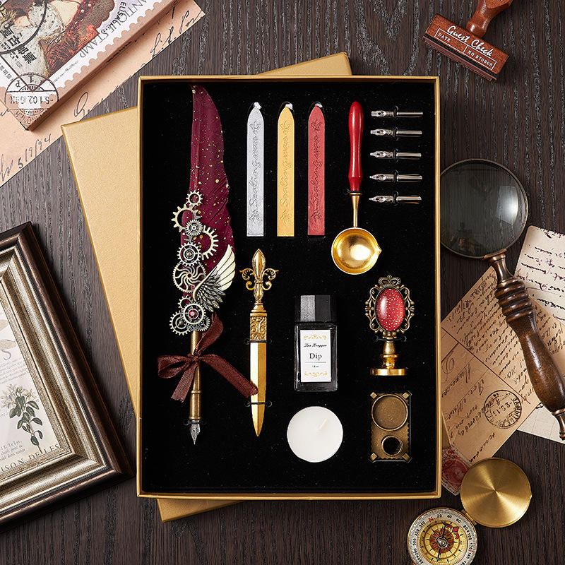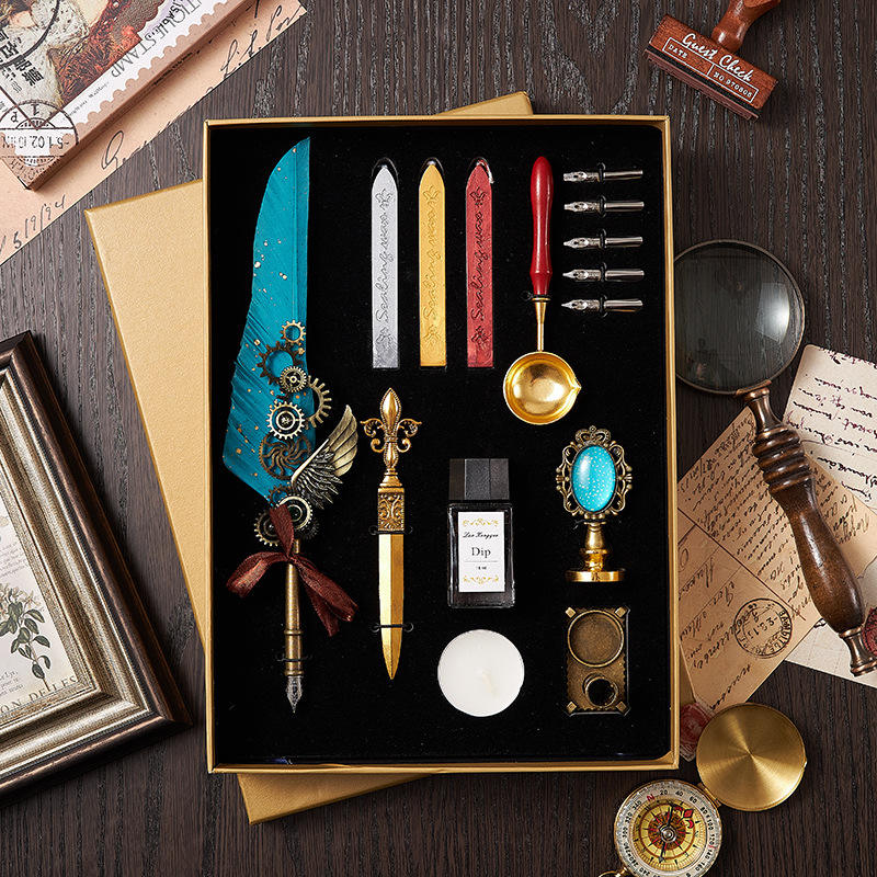 Bview Art – ensemble stylo et encre en plumes d'oie naturelles rétro, ensemble de cire à tremper dans l'eau