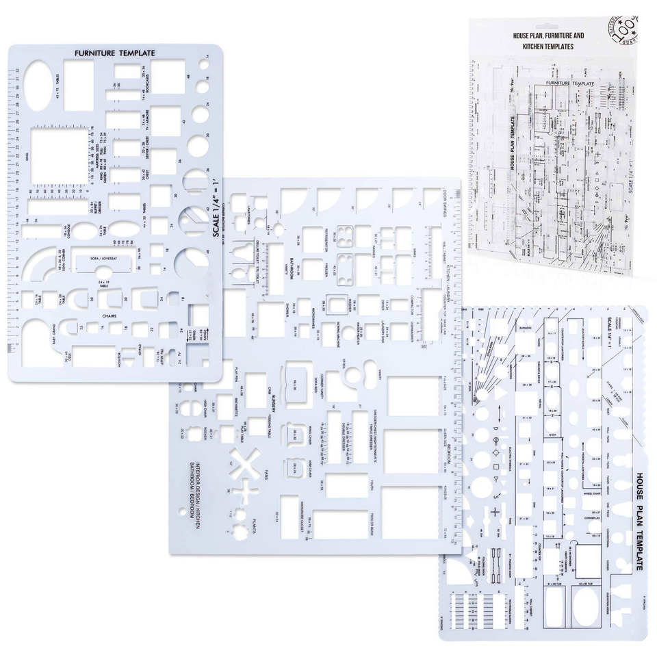 Bview Modèle de dessin en plastique Règle Plan de maison Design d'intérieur et modèles de mobilier Outils de dessin et formes de règle