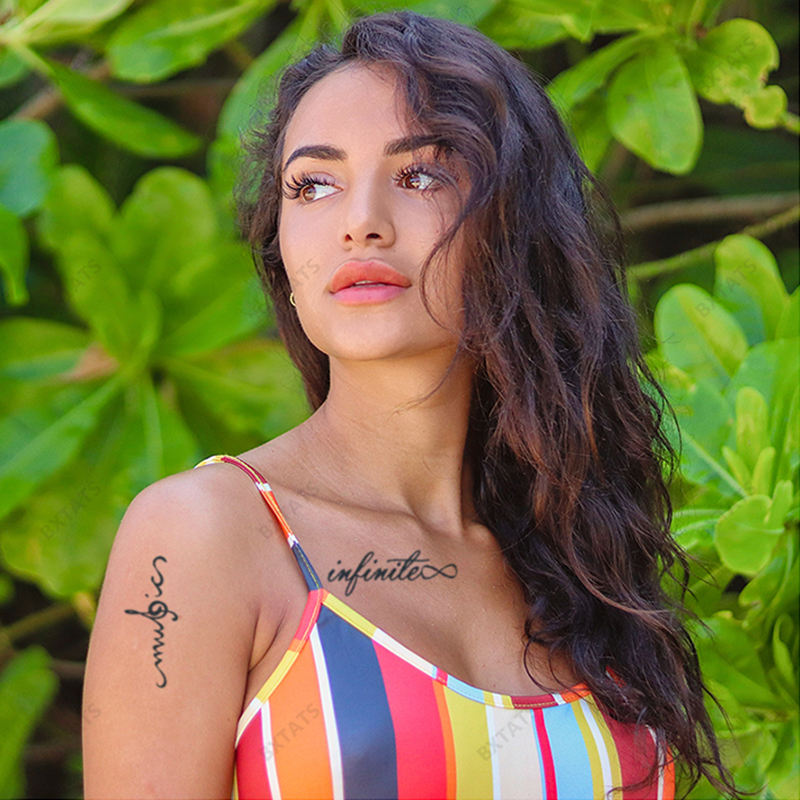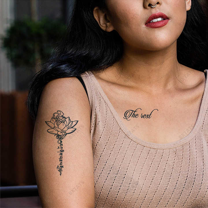 Bxtats 15 jours durables Semi-Permanent étanche doigt tatouage en forme de coeur anglais citations fleur de Lotus blanc corps temporaire