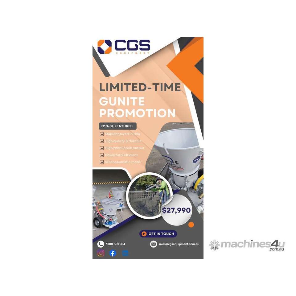 C-10SLF New Construction Rotary Gunite Machines Low/Medium Production 1.5 System Flat Hopper Efficient Engine Pump Components