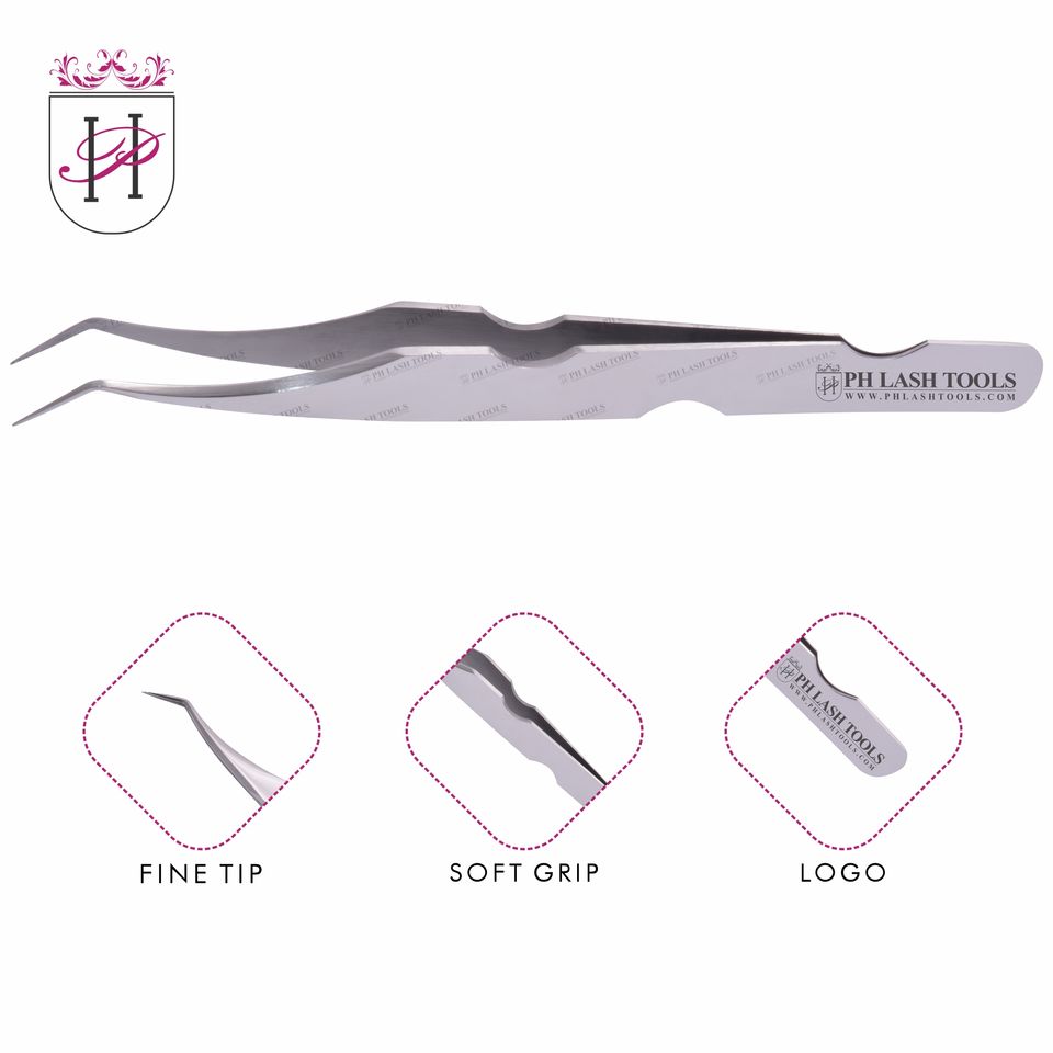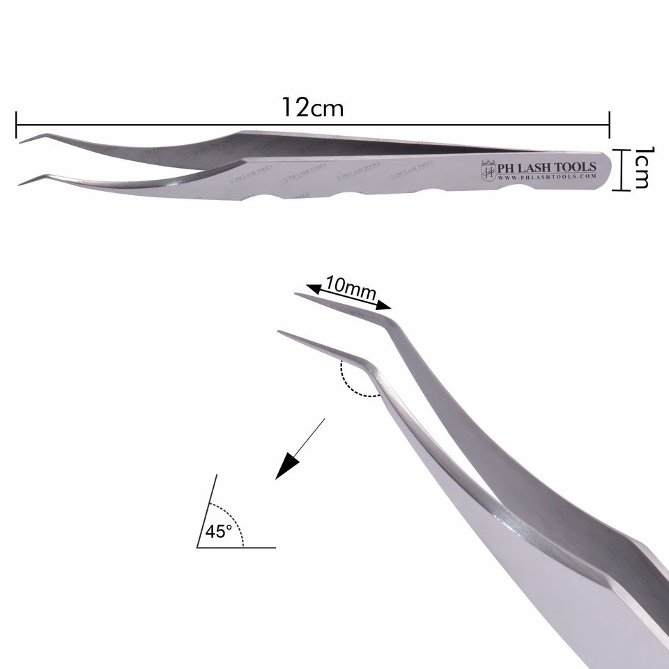 Pince à épiler le Point C pour l'extension des cils de couleur polie mate, nouvelle arrivée pince à épiler le Point C pour l'extension des cils de 10mm et 45 degrés