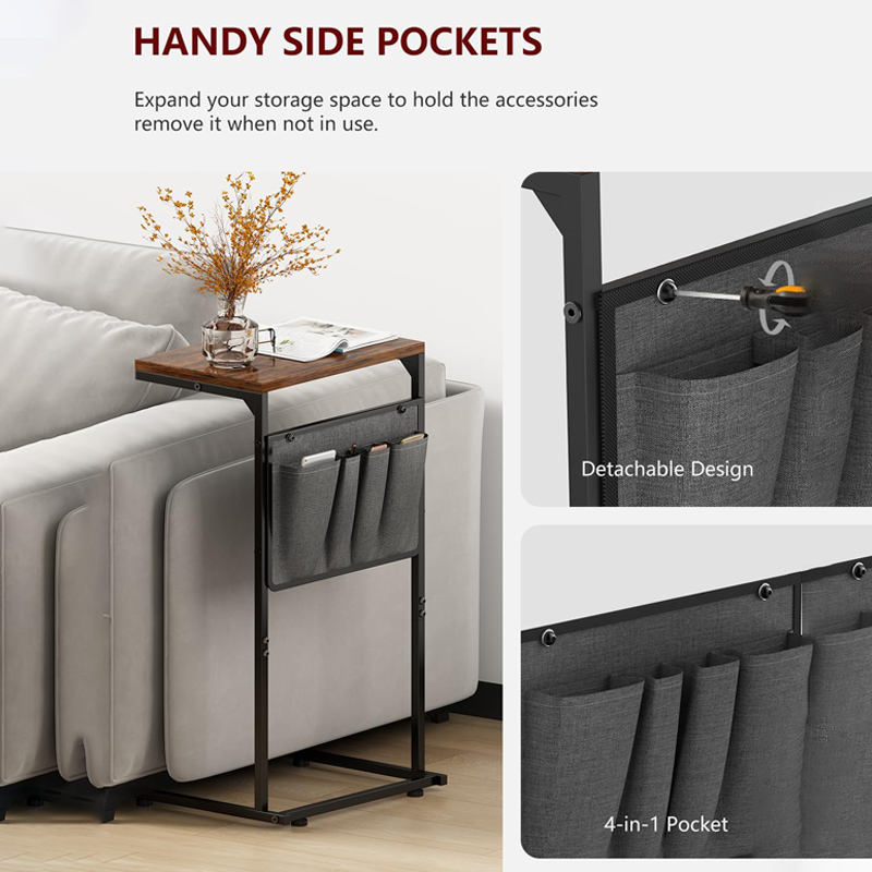 Petite table d'appoint marron rustique en forme de C pour salon chambre canapé inclinable canapé coulissant plateau bureau stockage métal Durable