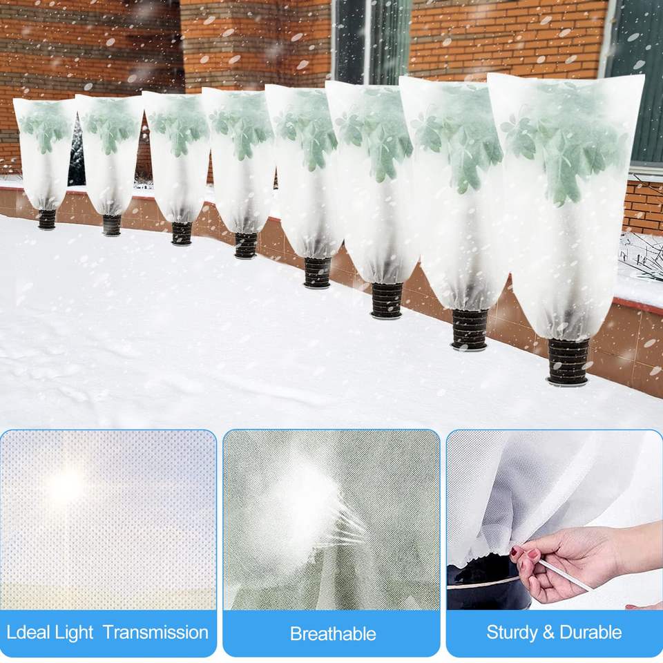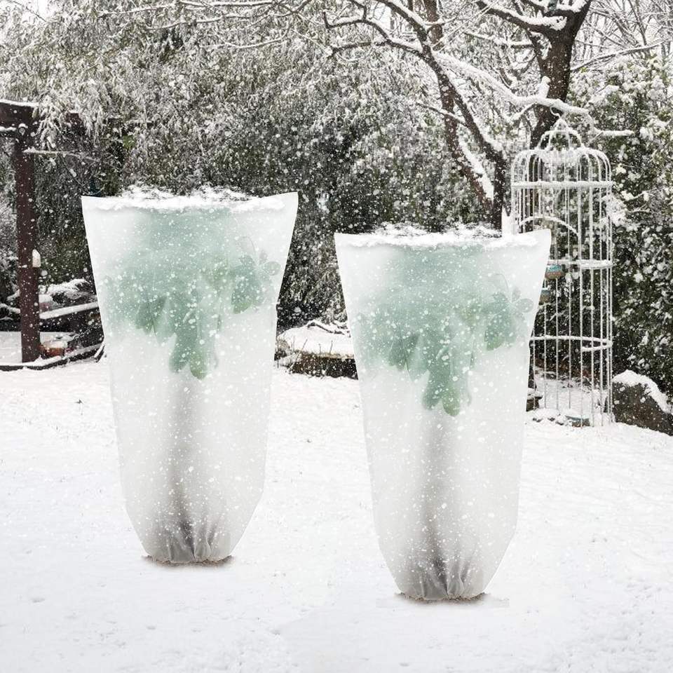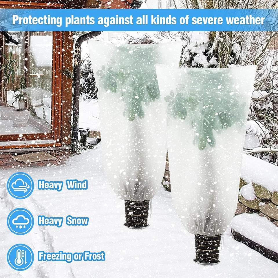 C105 Sacs à cordon de protection des plantes d'hiver Couverture d'arbuste Couverture de gel des arbres Tissu pour plantes d'extérieur Couvre la protection contre le gel