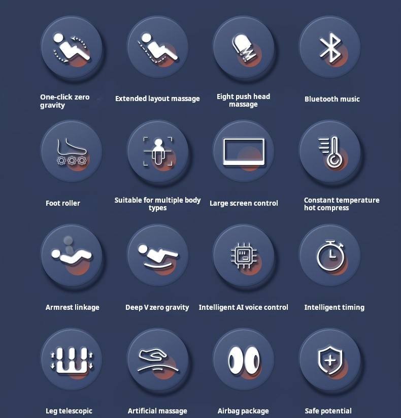 Portable, zéro gravité, Pliable, Vibration, Massage de pied, soins de santé, Écologique, manipulateur 4d, compresse chaude, suivi sl massage, commande vocale intelligente, système Bluetooth, gestion à distance d'ordinateur