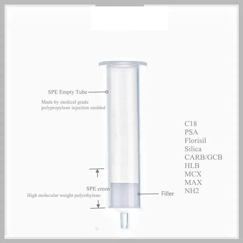 Cartouche C18 SPE Extraction en phase solide Carbone 18 (avec capuchon) Chromatographie HPLC 1mL 3mL 6mL Colonne de remplissage en plastique Fournitures de laboratoire