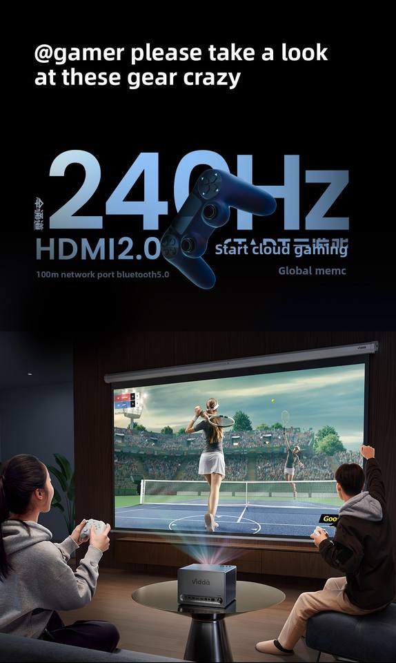 Projecteur laser tricolore Hisense C1S 4K Android portable pour cinéma maison et jeux, idéal pour la chambre, le bureau et le salon