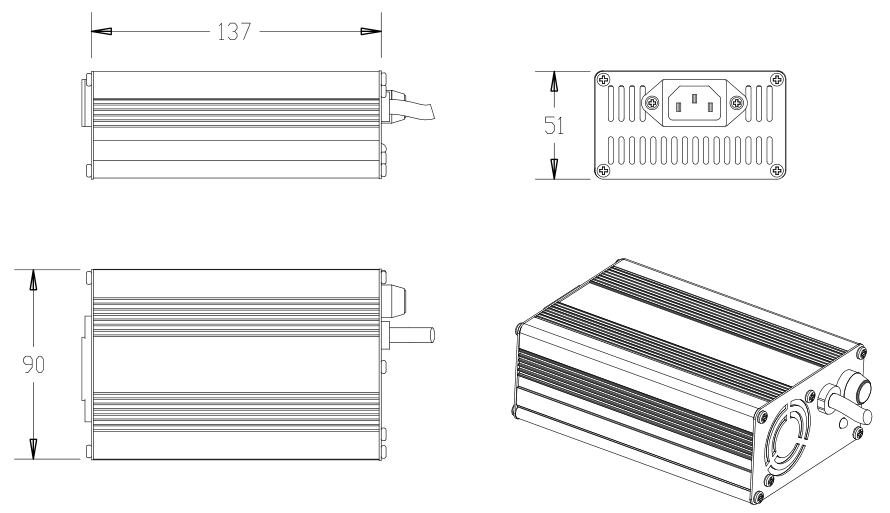12V 15A, 24V 10A, 36V 6A, 48V 5A, 60V 4A, 72V 3,5ASortie