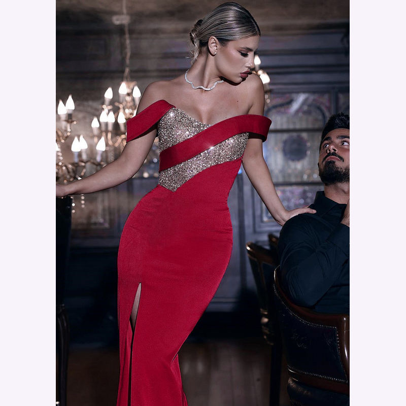 Robe de soirée longue rouge, épaules dénudées, élégante, moulante, pour femmes, nouvelle collection 2022, C3099