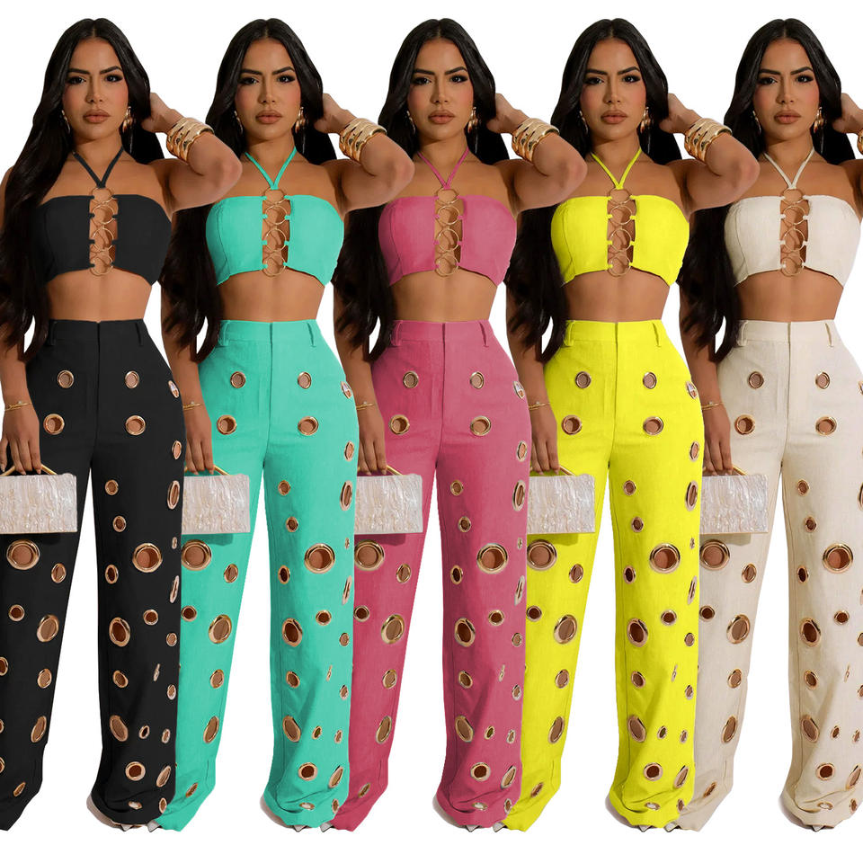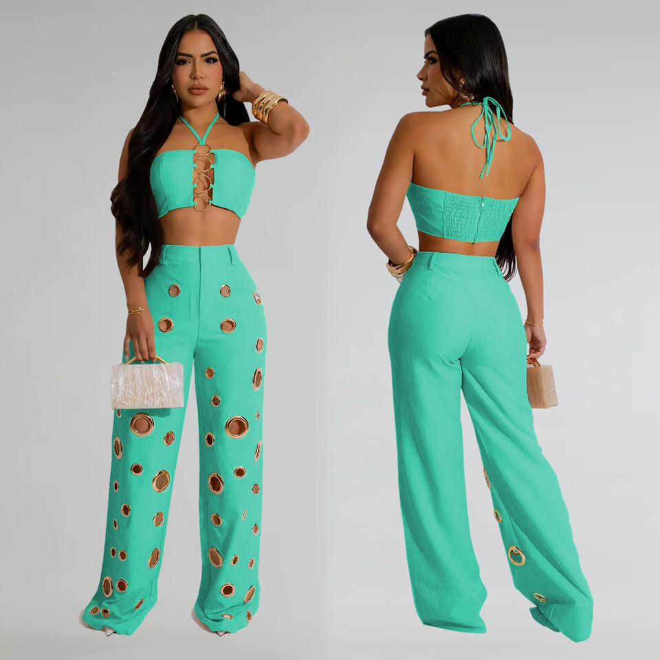C7313 European American Women's Sexy Two-Piece Shorts Set New Cross-Border AliExpress for Amazon Corns Metal Buckle Pants Short