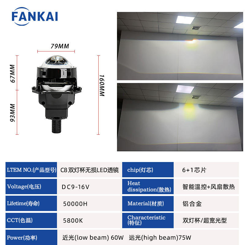 Lentille LED haute définition C8 à double réflecteur, sans perte.couleur