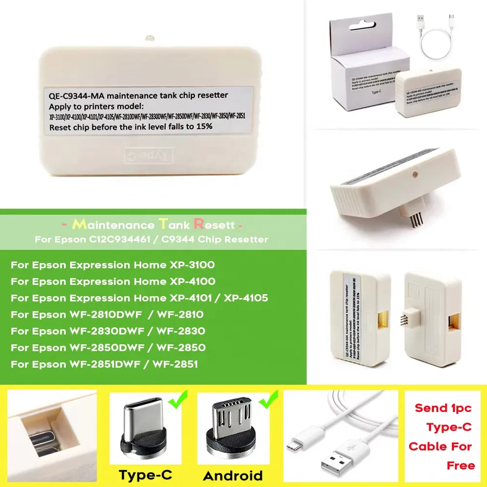 Réinitialiseur de puce de réservoir de boîte de maintenance C9344 pour Epson L3560 L3550 L5590 XP-2100 2105 3100 4100 4105 2810 Réinitialiseur de puce de maintenance