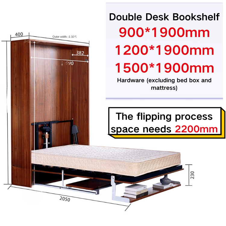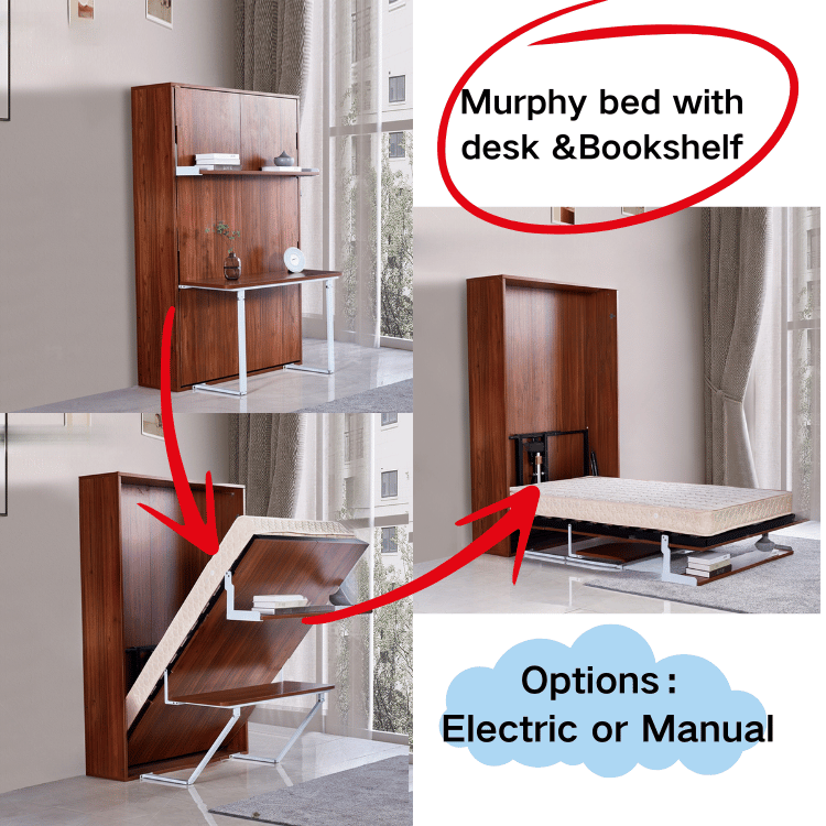 Lit Mural Escamotable C98 Moderne à Double Couche, Télécommande Électrique, Quincaillerie Dissimulée, Étagère et Bureau, Cadre Métallique, Lit Pliant Invisible
