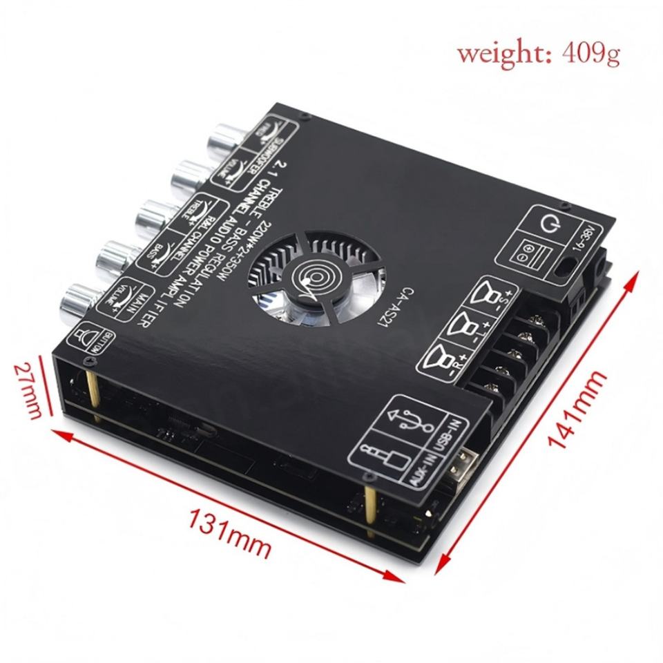 Carte d'amplification audio numérique CA-AS21 2.1 canaux 2 * 220W+350W avec subwoofer haute et basse fréquence
