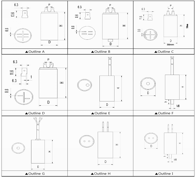 Condensateur à film polypropylène CABO CBB60 7,5 µF pour moteur de pompe submersible de puits profond 250 VCA/450 VCA 1~100 F Certifié IEC 61071