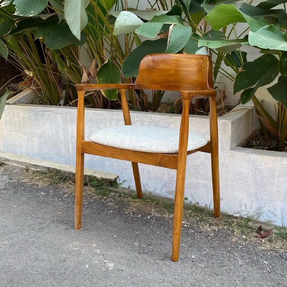CAFE TEAK WOOD CHAIR WITH FABRIC SEAT MADE IN INDONESIA