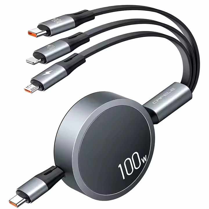 CAFELE 100W charge rapide 3 1 câble USB C rétractable vente chaude 3-en-1 câble de données de type C pour téléphones mobiles ordinateurs portables 12 mois