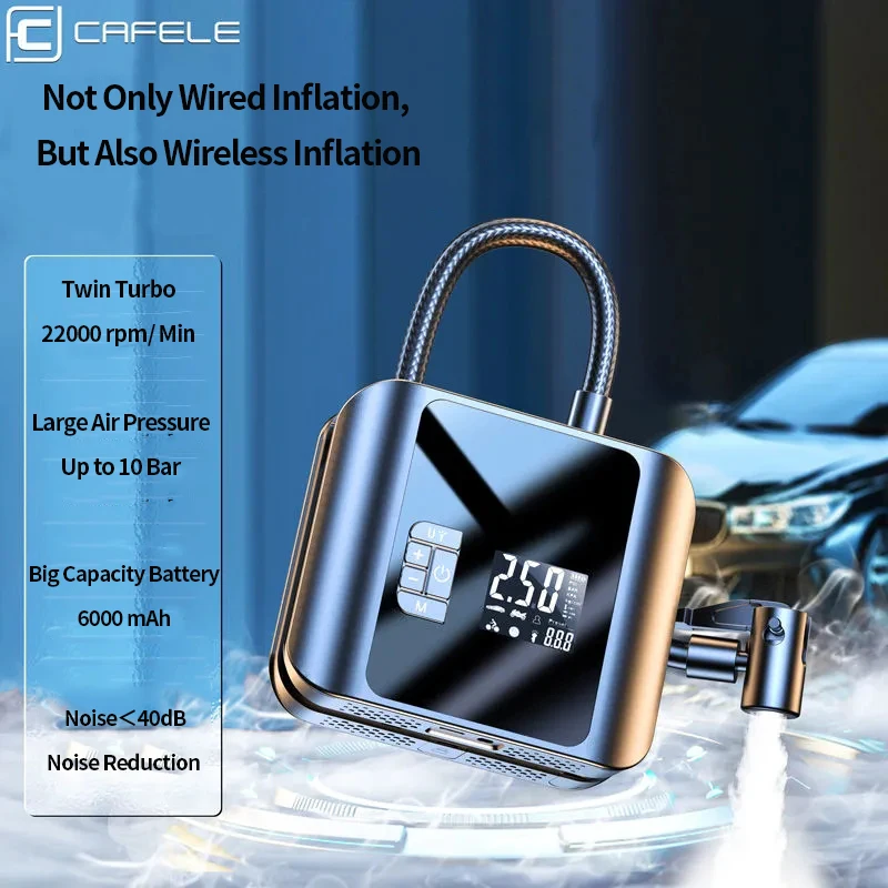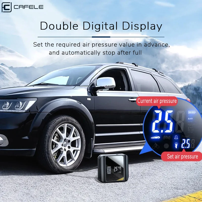CAFELE Pompe de gonflage de voiture électrique Portable Puissant gonfleur de pneu Compresseur d'air de voiture numérique sans fil pour moto vélo