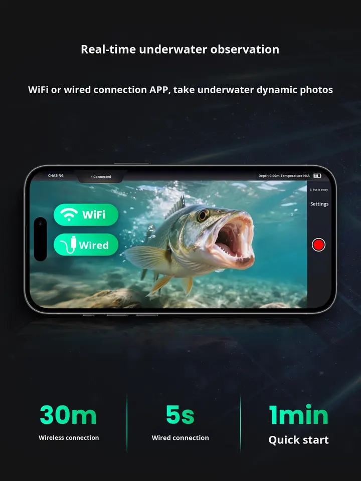 Détecteur de poissons intelligent CANFISH CF1 avec caméra HD à vision nocturne, appareil de streaming en direct sous-marin à grand angle de 130 degrés