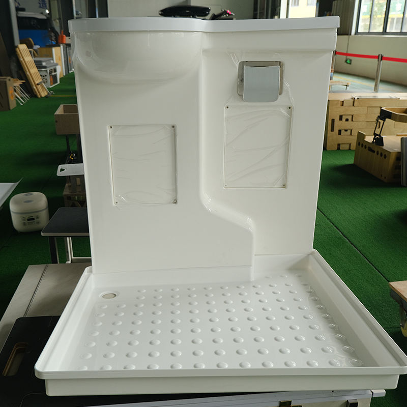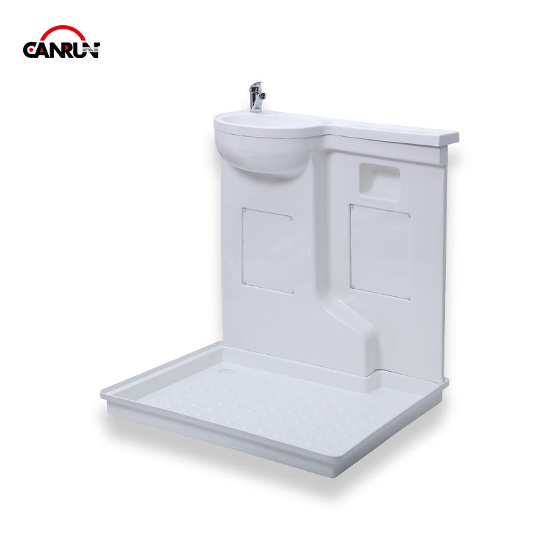 CANRUN Lavabo de salle de bain blanc en acrylique, lavabos muraux, égouttoir de douche, accessoires pour camping-car et caravane