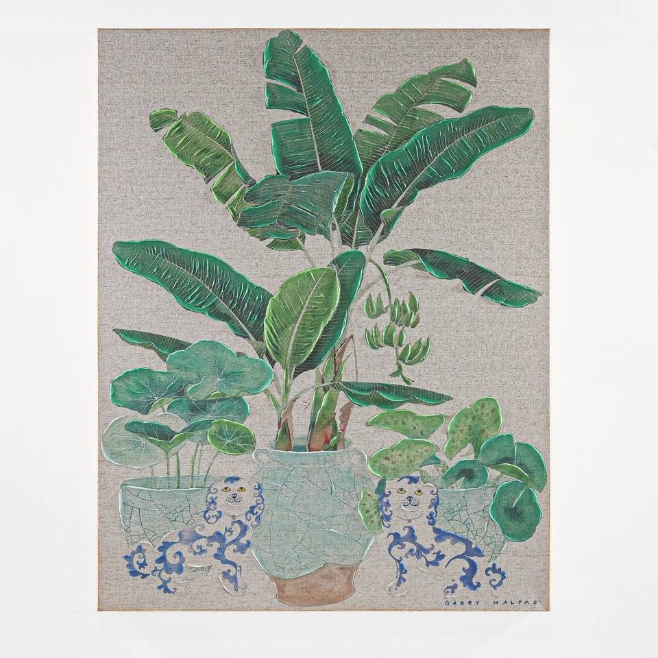 Peinture sur toile de plantes avec cadre en feuille d'or 85x110cm épaisseur 5cm