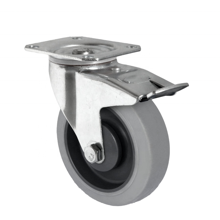 CASCOO Raccord de plaque de roulette TPR gris industriel de 5 pouces avec roulement à billes et frein Support OEM pour meubles