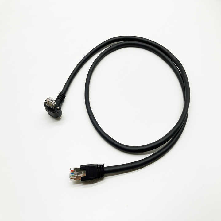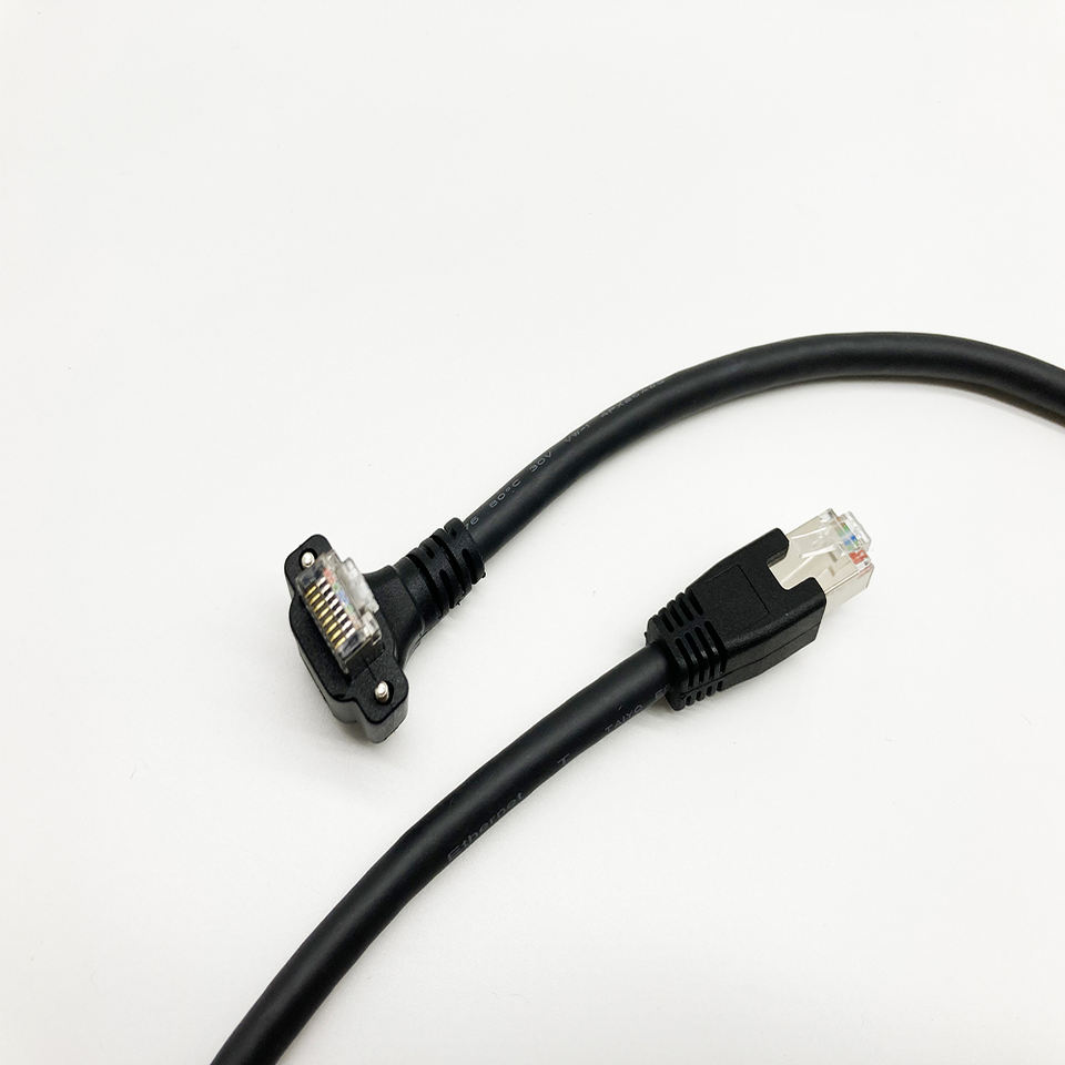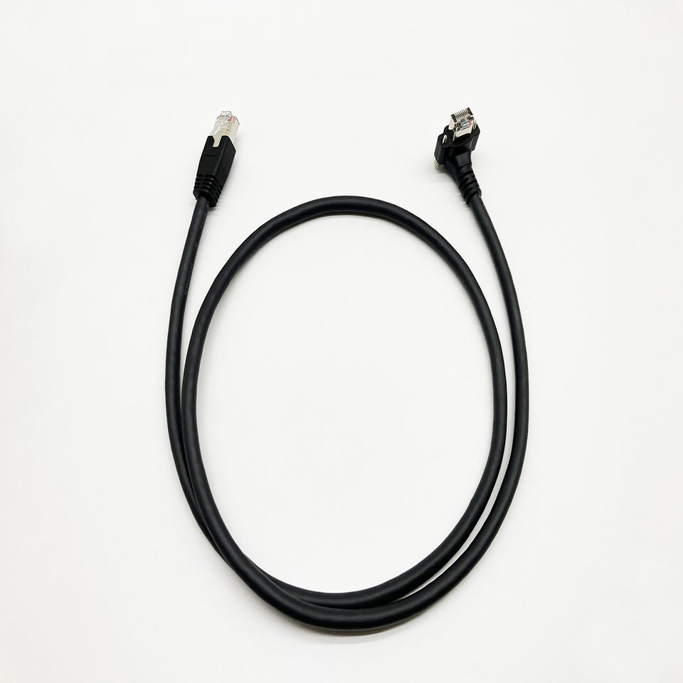 Câble réseau blindé CAT 6a, connecteur RJ45, S/FTP, cordon Ethernet CAT6a coudé vers le haut et vers le bas avec double verrouillage à vis