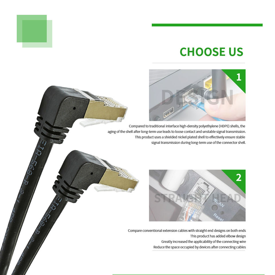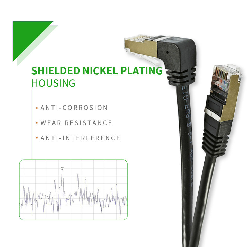 Câble de raccordement réseau blindé CAT 6a Connecteur RJ45 S/FTP vers le haut Angle 90 degrés CAT6a 10Gbps 10ft 26AWG Cordon de raccordement Ethernet