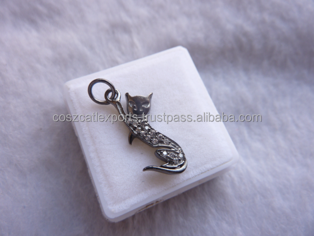 Pendentif à recherche de chat en diamant, argent, pavé complet, 925 pavés